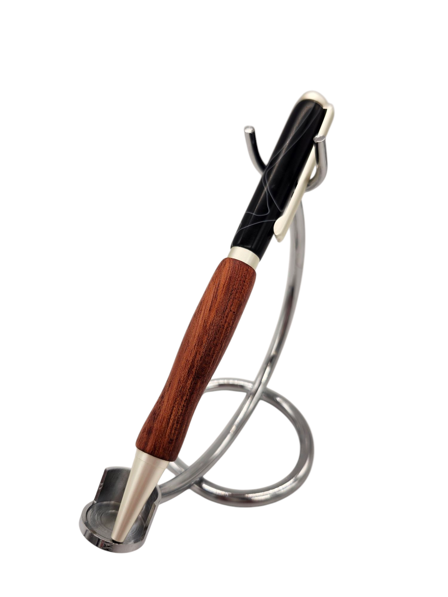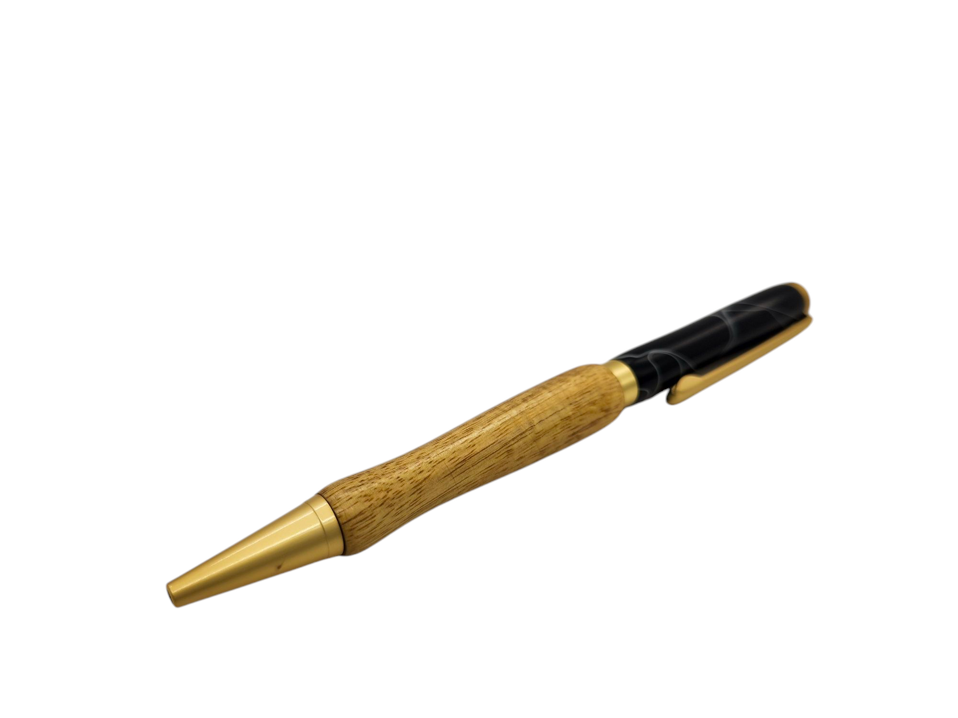 Crafted from various premium woods, the front parts of our pens exude timeless sophistication. Meanwhile, the back parts feature swirly black acrylic, creating a dynamic and eye-catching design. Held together with slimline hardware, these pens boast sophistication and durability.