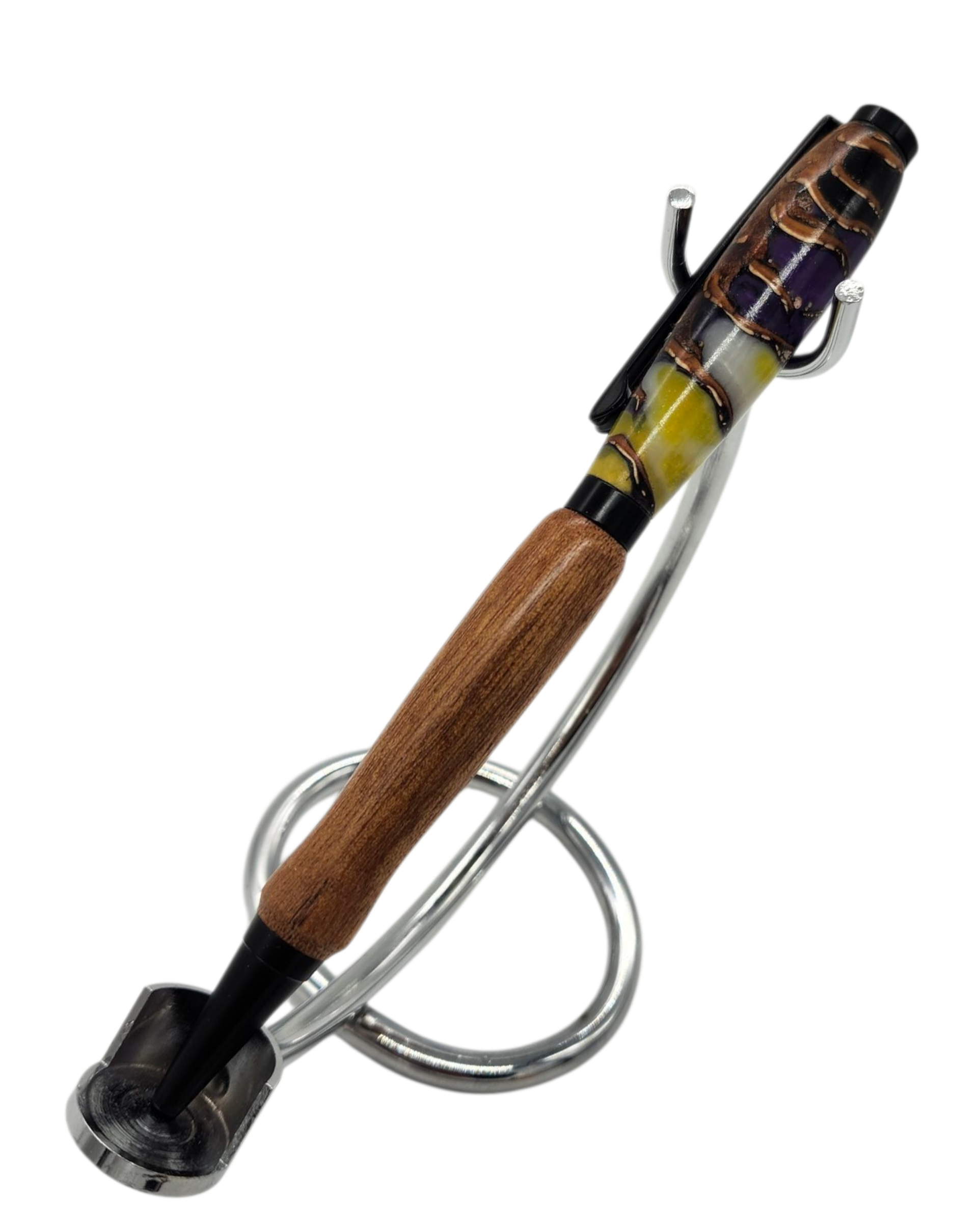 Crafted from various premium woods, the front parts of our pens exude timeless sophistication. Meanwhile, the back parts feature hand-poured resin, layered around a pinecone to create a bold and unique nonbinary pride flag design. Held together with slimline hardware, these pens boast sophistication and durability.